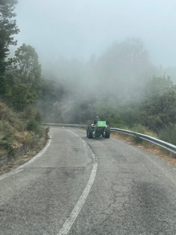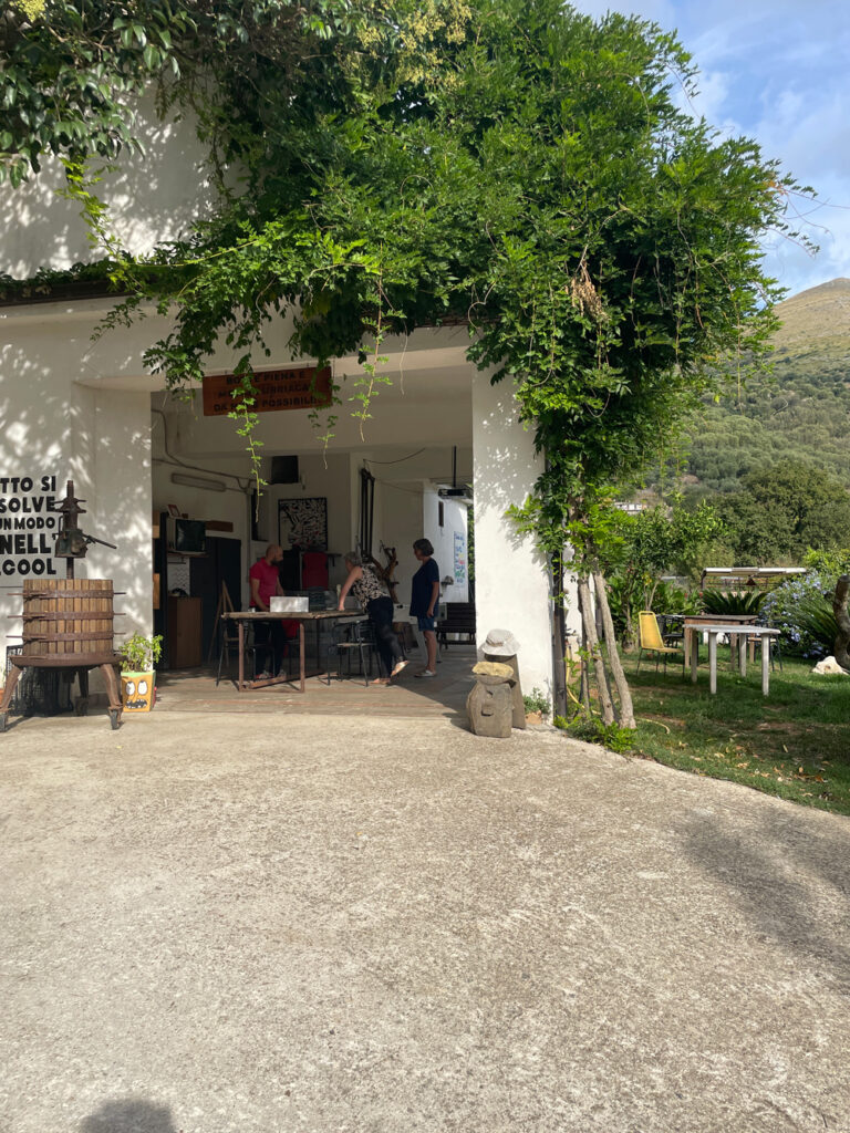 Um dann in Camerota beim Weingut Donnaclara eine Weinprobe mitzumachen. (Zusammen mit Elisabeth und Gerhard, ein gesprächiges Paar aus Deutschland.) Sehr, sehr nett! Der sympathische Ex-Grafiker Luca, der das Weingut seines Schwiegervaters übernommen hat, erzählt und erklärt und tischt auf. Der Stellplatz ist kostenlos – was für ein gastfreundliches Konzept! Camerota erreicht man übrigens nach einer Serpentinenfahrt, die es durchaus mit dem Trasfogarasan aufnehmen kann! Nicht ganz so hoch, aber die Kurven …