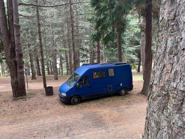 Nach Küste und Strand wollen wir natürlich wieder in die Berge und ins Grüne (hatten wir ja schon …). Zum Glück ist der Sila Nationalpark in der Nähe und es wird nicht lange gefackelt und hingefahren. Durch Maronenwälder. Nachts wird es hier schon ganz schön frisch, das sind wir überhaupt nicht mehr gewöhnt! Wir campen am Lago Arvo auf 1295 Metern Höhe, ein künstlicher See mit Strand drumherum – irgendwie ziemlich surreal und sehr schön und einsam. Das Surrealste ist allerdings, dass die Berge quasi eine riesige Düne sind! Wie das funktionieren kann. Also irgendwann war Sila Meeresgrund und wurde dann hochgehoben. Soweit sogut. Aber dass der Sand so lange an Ort und Stelle bleibt und nicht wegweht oder wegschwimmt? Irre.