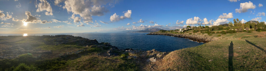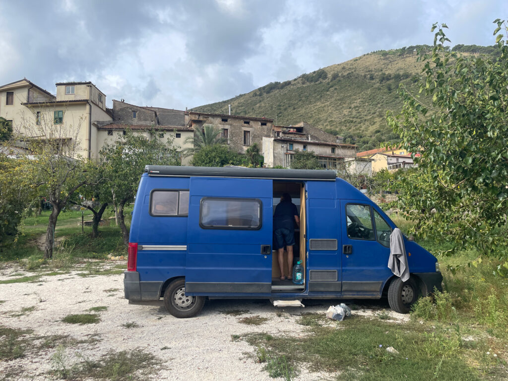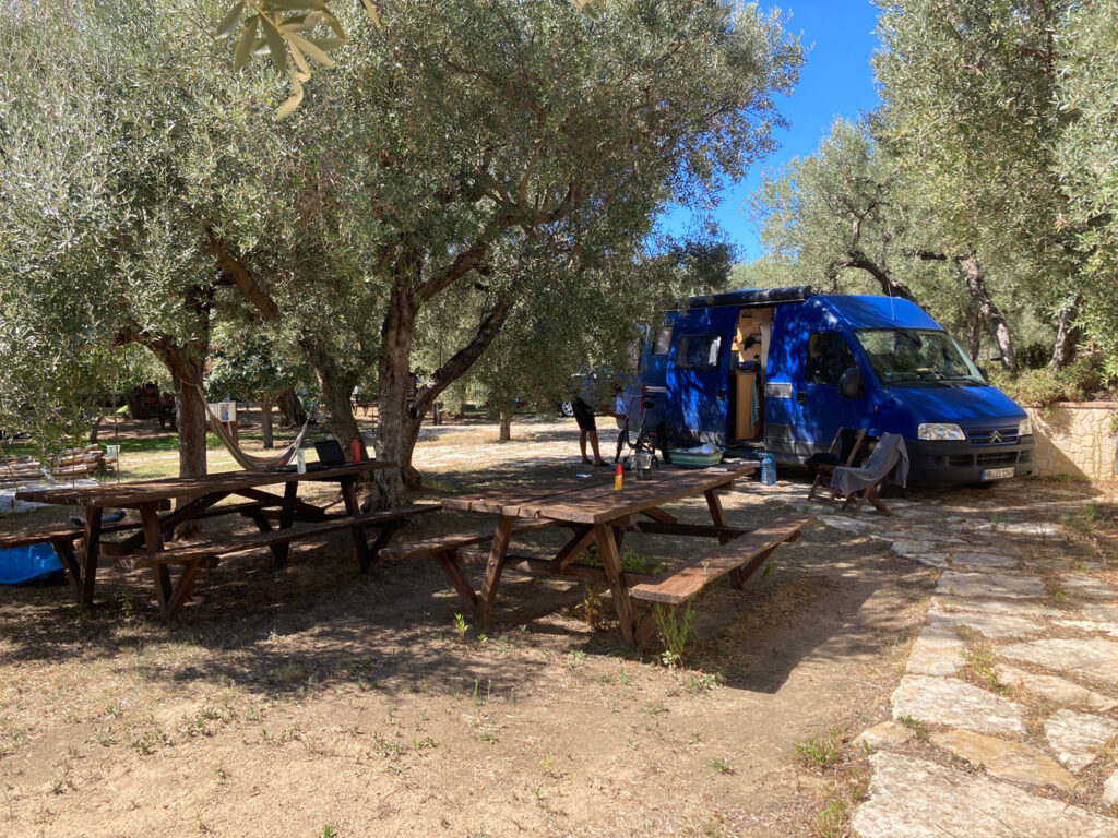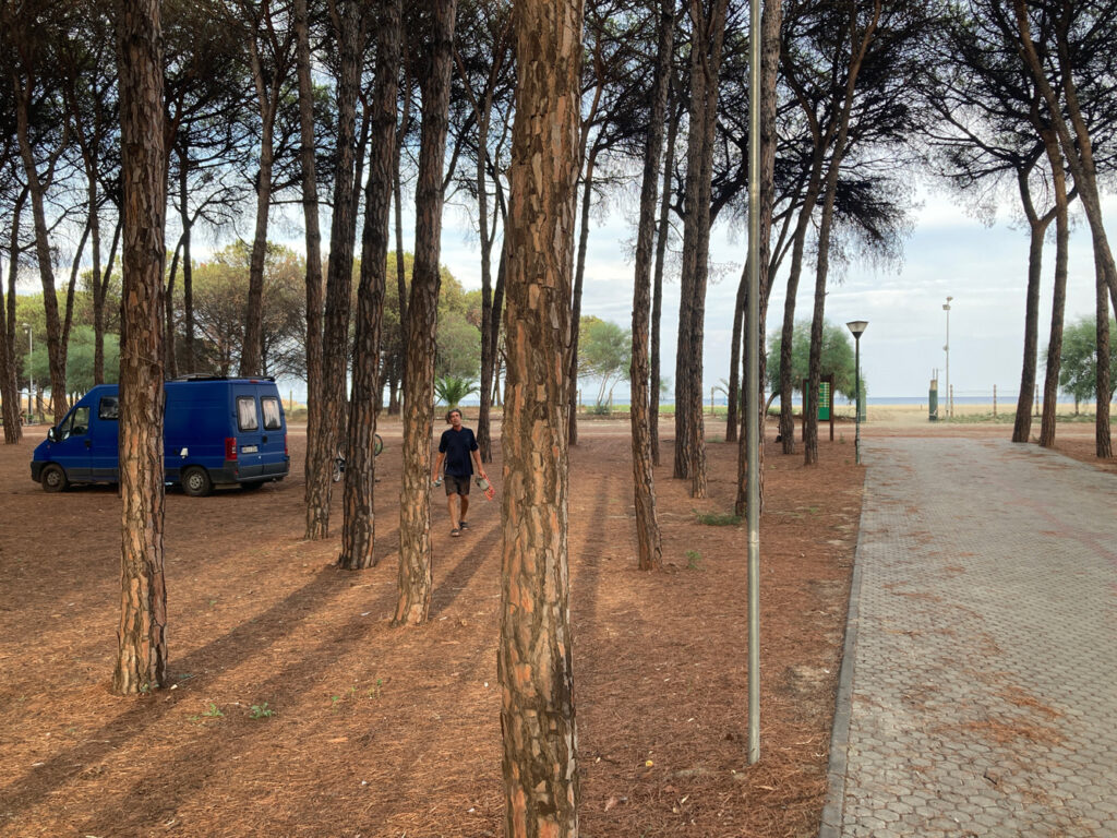 An die (Küste) stellen wir uns danach für ein paar Tage. Und zwar in Kalabrien in Salicetti. Campingplatz im Off-Modus. Saison vorbei, Aufräumarbeiten und nur ein paar Profiurlauber (Rentner), mit denen wir uns die riesige Anlage aus den 70ern teilen. Während der Saison muss das ein regelrechtes Stadtfeeling haben mit Ferienhäuschen, Campern, Minimarkt, Restaurant, Bühne usw. Aber jetzt stehen wir solo unter Pinien, kaufen frischen Fisch vom Strand weg und spannen sogar die Hängematte auf!