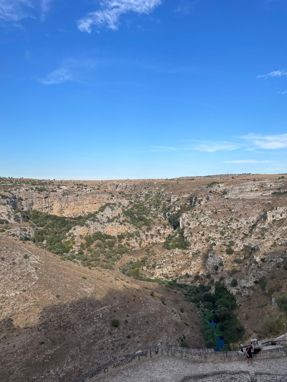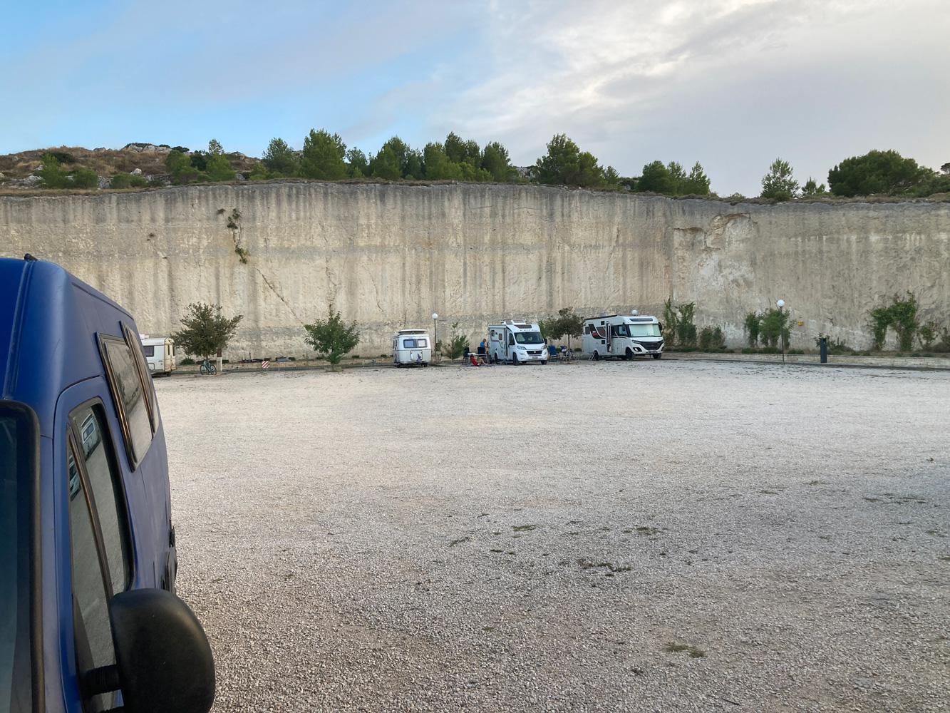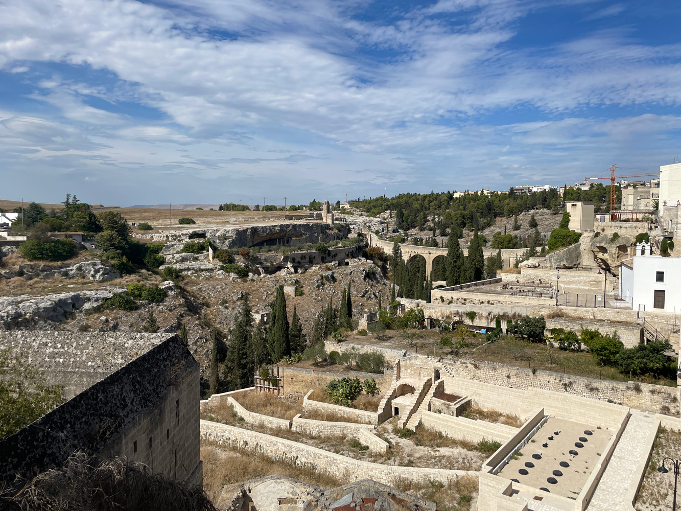 Eigentlich wollen wir uns Bari ansehen, aber nach langwierigen, erfolglosen Versuchen, einen Parkplatz zu finden, geben wir auf und fahren nach Gravina. Hier wurde u.a. der Film „Maria, ihm schmeckt’s nicht“ gedreht. Den Film haben wir nicht gesehen (müssen wir jetzt vielleicht nachholen), aber das Buch war lustig … Die Landschaft hier ist sehr karg und leicht hügelig – nicht so meins … allerdings gibt es hier auch schon Höhlenunterkünfte.