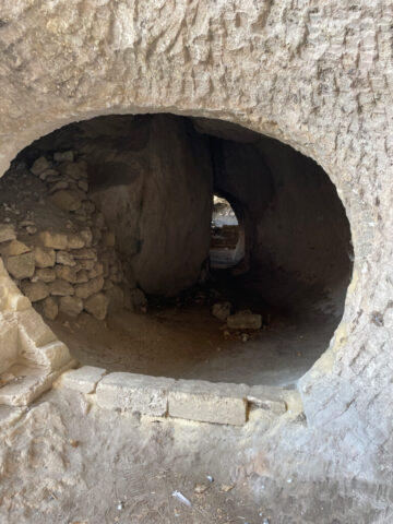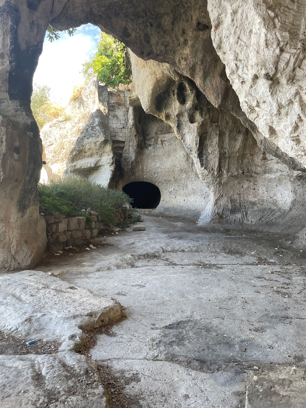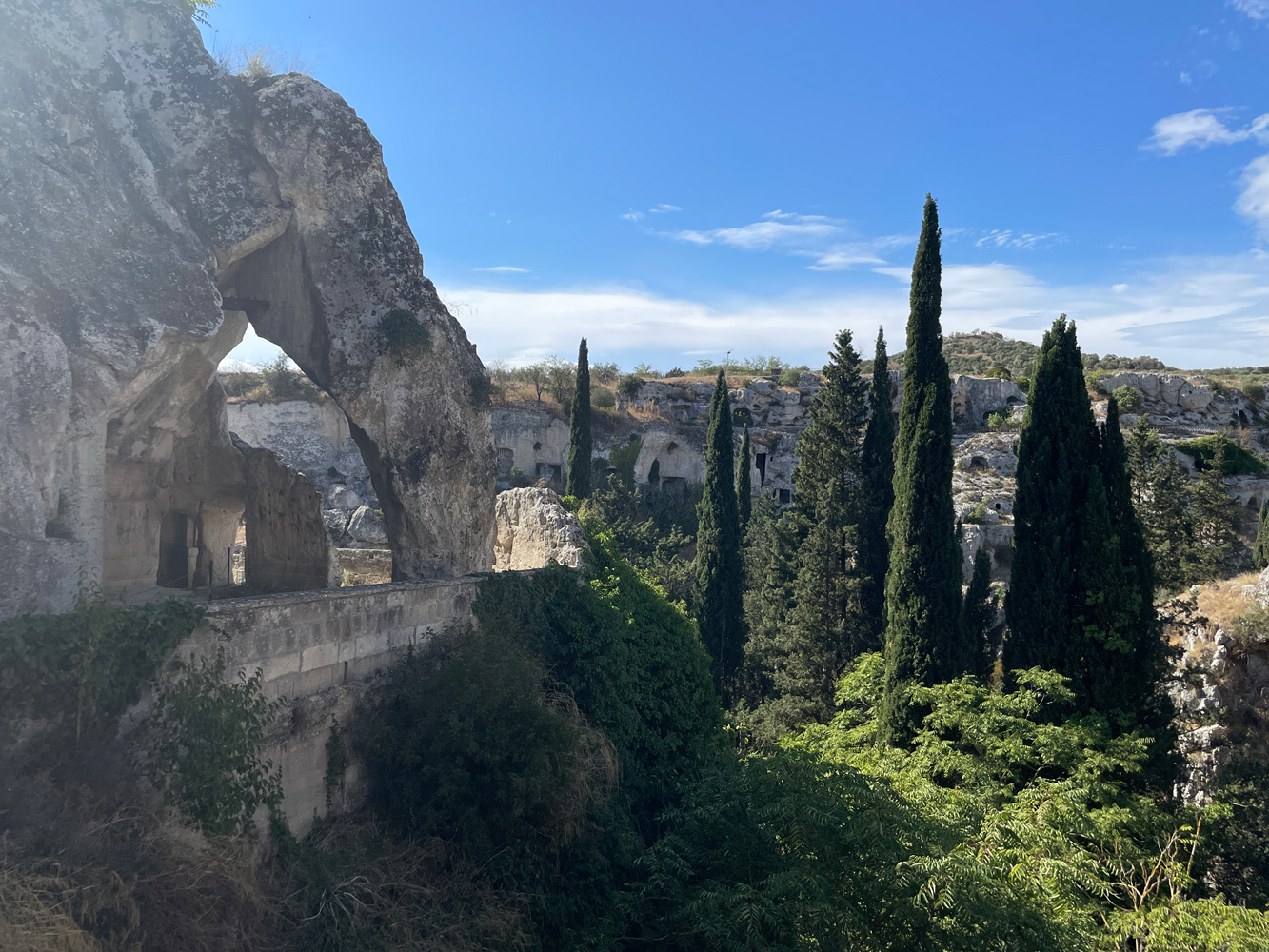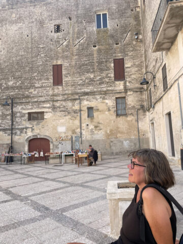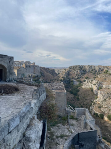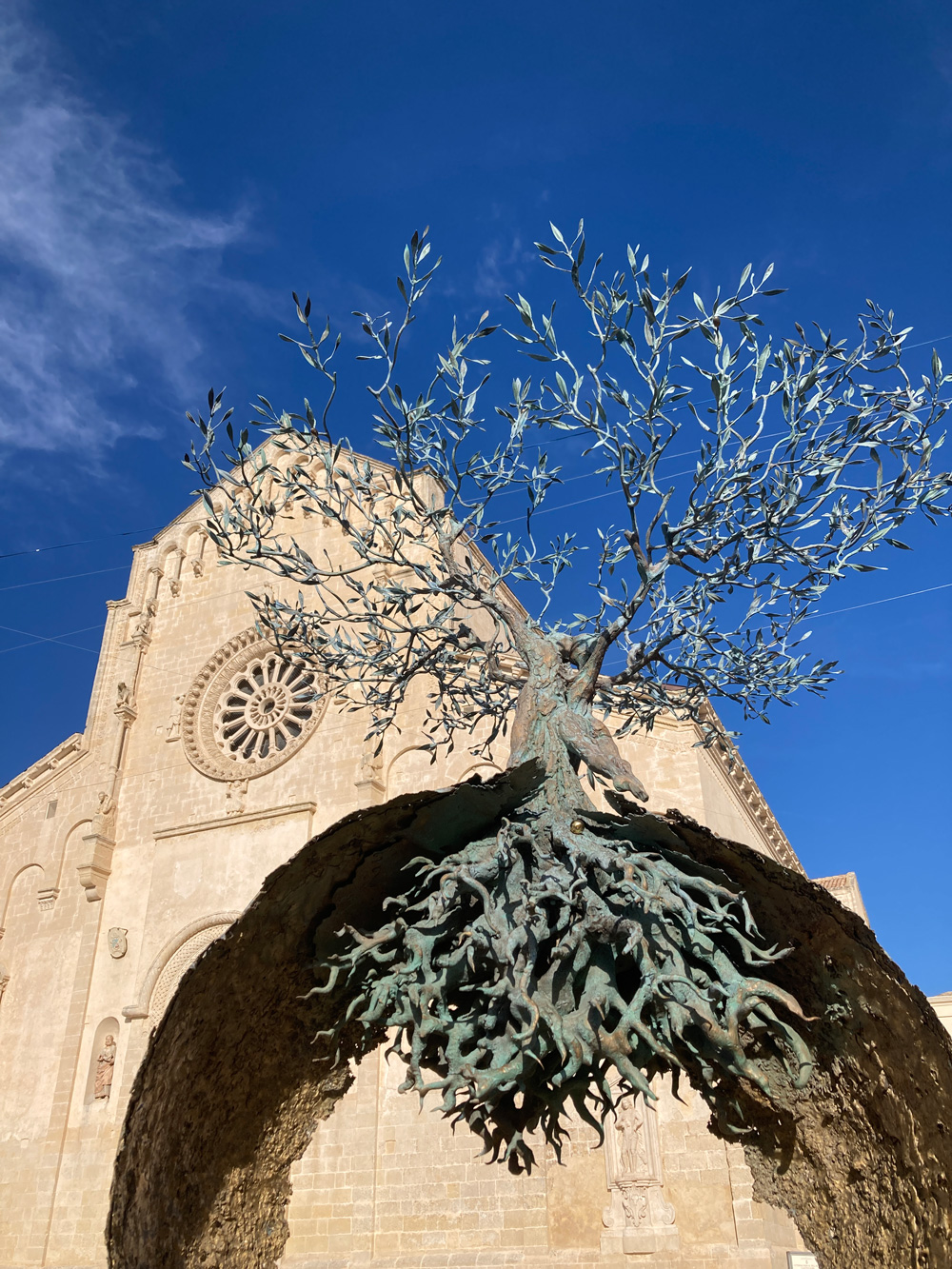 Eigentlich wollen wir uns Bari ansehen, aber nach langwierigen, erfolglosen Versuchen, einen Parkplatz zu finden, geben wir auf und fahren nach Gravina. Hier wurde u.a. der Film „Maria, ihm schmeckt’s nicht“ gedreht. Den Film haben wir nicht gesehen (müssen wir jetzt vielleicht nachholen), aber das Buch war lustig … Die Landschaft hier ist sehr karg und leicht hügelig – nicht so meins … allerdings gibt es hier auch schon Höhlenunterkünfte.