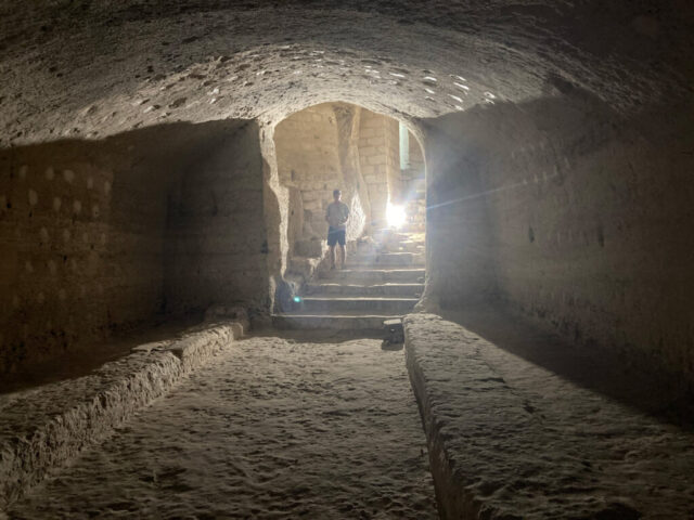 Und dann haben wir uns Neapel von unten angesehen. Sotterranea. Ein uraltes, kilometerlanges Gängesystem, entstanden durch den Abbau von Tuffstein und auch als Aquädukt genutzt, um Neapel mit Frischwasser zu versorgen. Mit der Reisegruppe „Untergrund“ schieben wir uns durch beängstigend schmale Gänge, staunen über riesige Höhlen und entkommen dem Regen an diesem Tag.