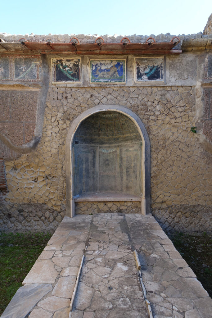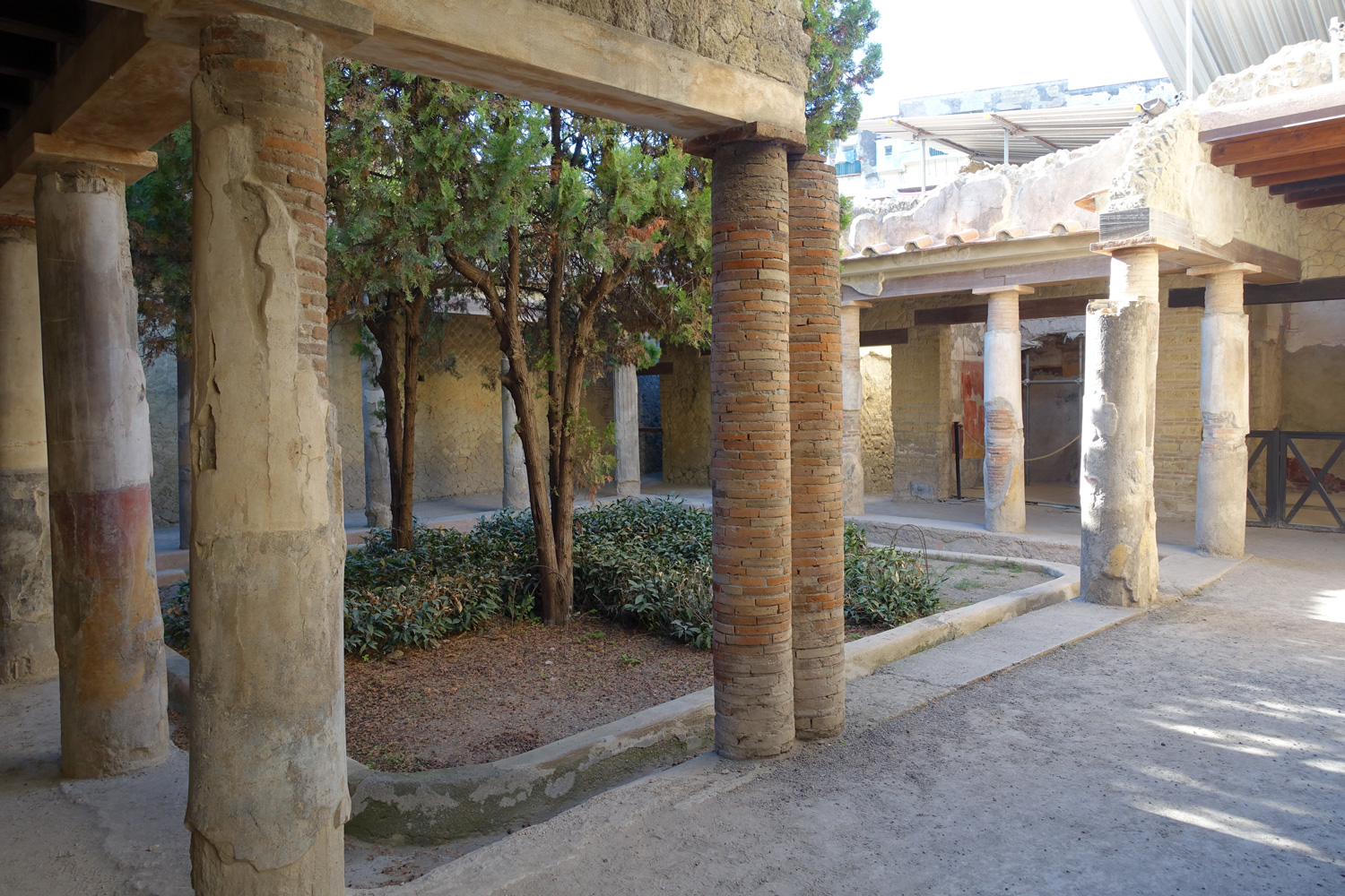 Von Nano und Uli hatten wir schon gehört, dass Herculaneum eigentlich genauso interessant ist wie Pompeji und sogar noch mehr Fresken und Details zu bieten hat, dafür aber übersichtlicher und eigentlich „ausreichend“ ist. Diesem Gedanken folgen wir gerne und fahren ins heutige Ercolano (seit 1969) mit den tiefer gelegten Ausgrabungen im Zentrum der Stadt.
