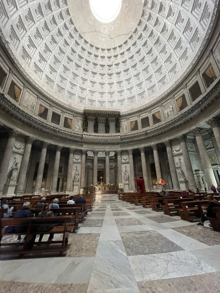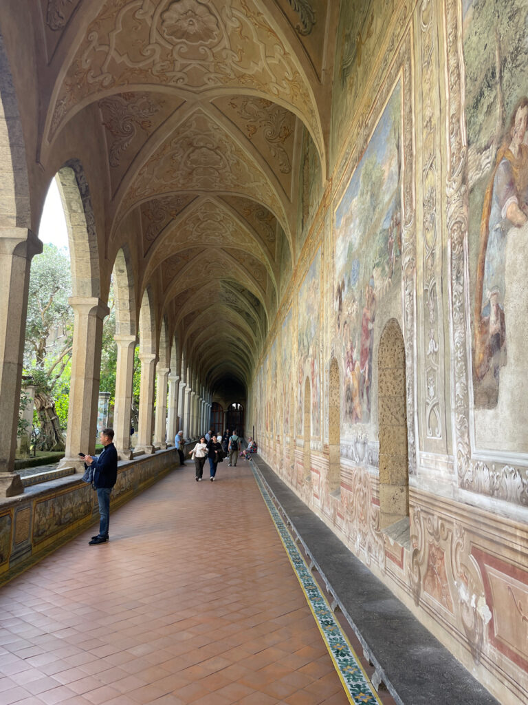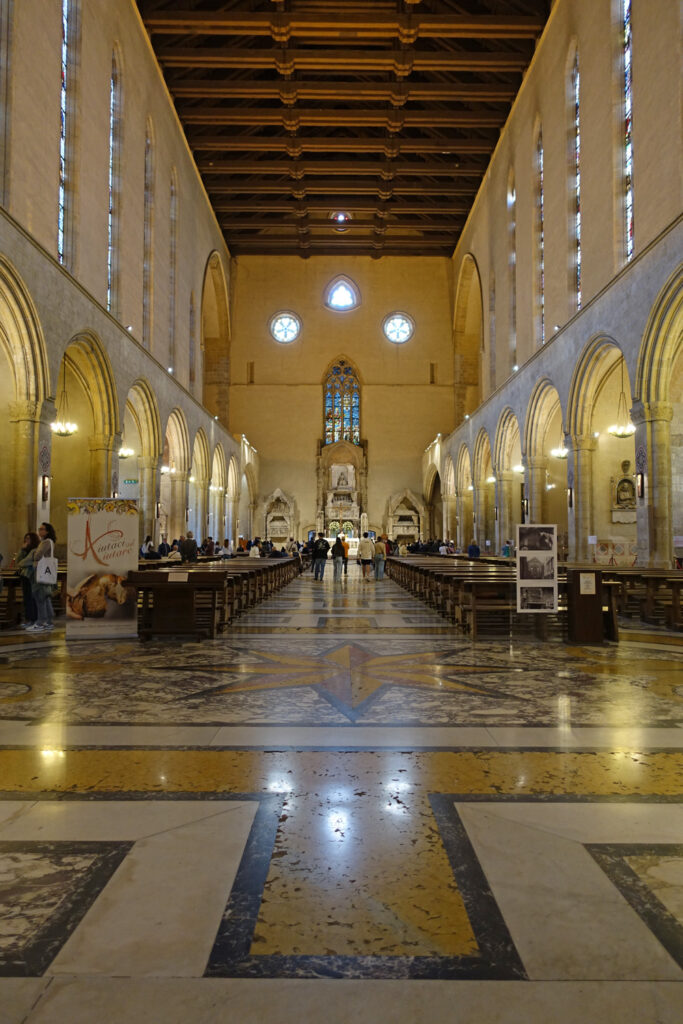Auch in der Altstadt: die Basilika Santa Chiara. Ein ehemaliges Kloster mit einem wunderschönen Kreuzgang – komplett mit Fresken und bemalten Fliesen ausgestattet. Das Gebäude wurde im 2. Weltkrieg mehr oder weniger total zerstört aber in kürzester Zeit wiederaufgebaut. Von oben – also Panoramablick – sieht man erst, wie gigantisch diese Kirche ist – beeindruckend!