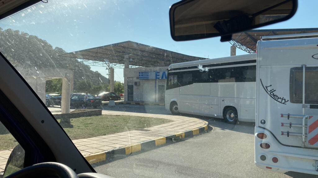 An der Grenze sehen wir schon dieses abartige Wohnmobil, das ungefähr vier bis fünf mal so groß ist wie der Jolly Jumper (quasi Reisebusgröße). Die stellen sich tatsächlich fast neben uns auf dem Campingplatz – und man merkt, dass eigentlich alle anderen ausnahmslos belustigt sind über soviel Größenwahn. Ich verbringe meine einzige Nacht in Griechenland und am nächsten Tag schaffen wir es trotz chaotischer Organisation auf die Fähre nach Brindisi. Während der Überfahrt herrscht eine steife Brise – aber wir bleiben auf dem Oberdeck und lassen links Korfu und rechts die albanischen Berge an uns vorbeiziehen. Und die sind auch aus dieser Perspektive und im Nachklang sowas von schön …