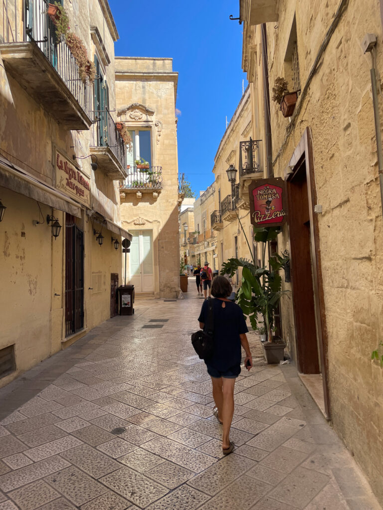 Wir sind froh, dass wir keine Roamingprobleme mehr haben und freuen uns auf die italienische Küche und ihre Zutaten! Da wir normalerweise in Italiens Mitte hängenbleiben, wollen wir die Gelegenheit nutzen und uns die Stiefelspitze ansehen. Auf nach Lecce! Und hier bewahrheitet es sich auch schon: Italien ist ziemlich anders als die bisher bereisten Länder. Kultur und Geschichte an jeder Straßenecke, gepaart mit dem italienischen Straßenleben – was Albanien zugegebenermaßen auch ziemlich gut kann – und den Gaumenfreuden! Cappuccino, Cornetti, Pasta, Pizza, Pesce, Gelato … Man könnte den ganzen Tag essen und trinken! Oder sich in Supermärkten rumtreiben, was wir ausführlich tun. Lecce mit seiner Barockarchitektur gefällt uns schon mal ziemlich gut und Matthias ist besonders begeistert, als er herausfindet, dass U.S. Lecce als einziger süditalienischer Club in der ersten Liga spielt.