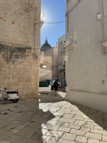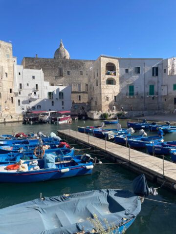Bei Polignano al Mare verbringen wir die nächste Nacht. Diese italienischen Küstenstädtchen haben alle besonderen Charme. Verwinkelte Gassen und labyrinthische Anlagen, überraschende Perspektiven und Details, neben dem Touristennepp sogar schönes Handwerk und einladende Bars an jeder Ecke!