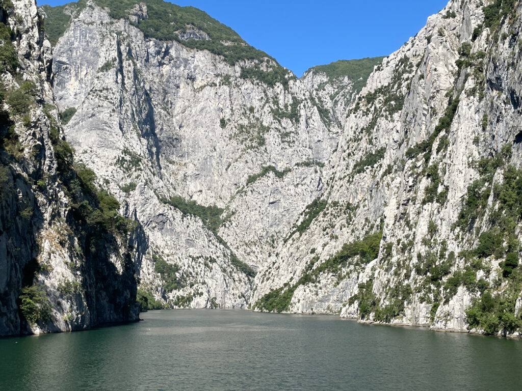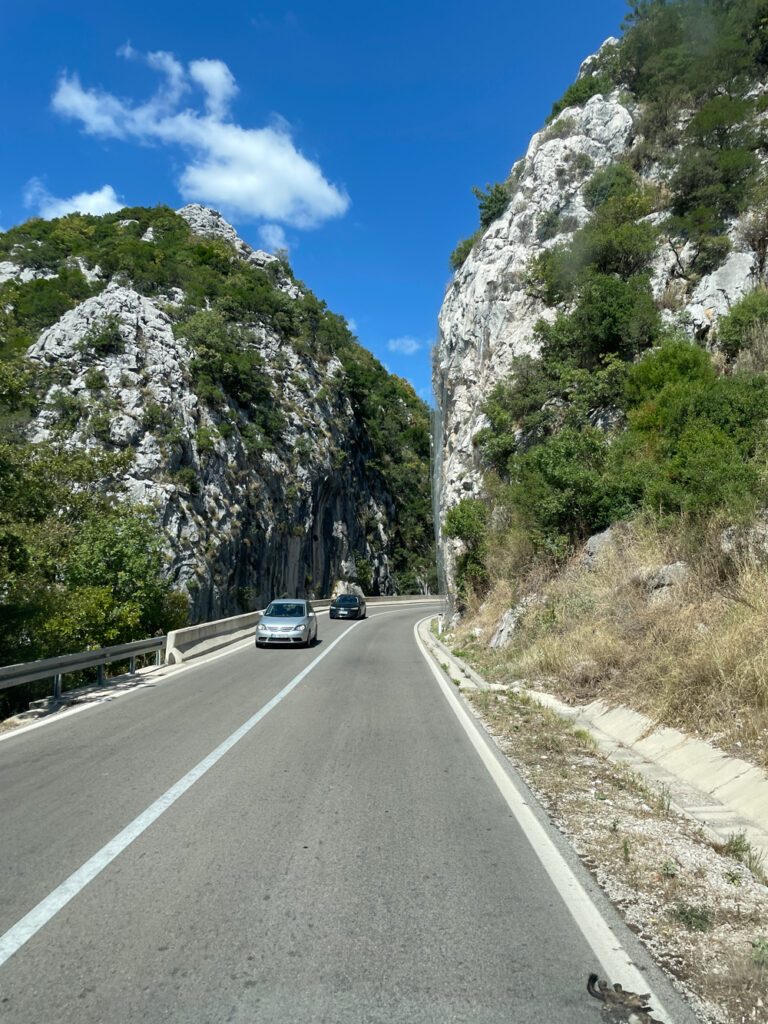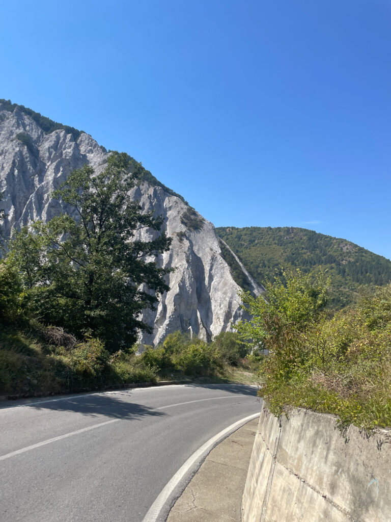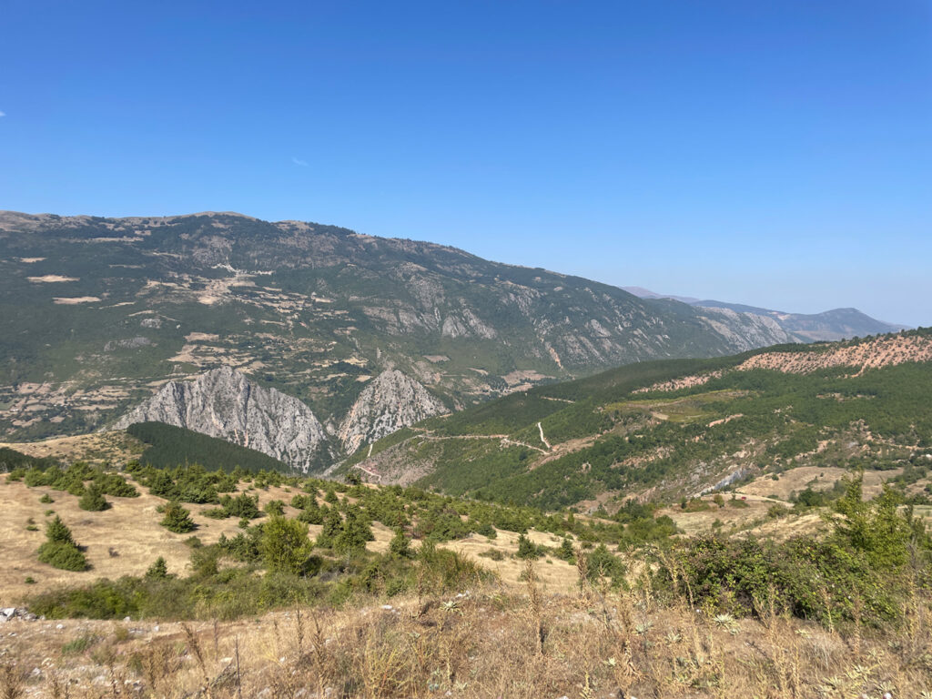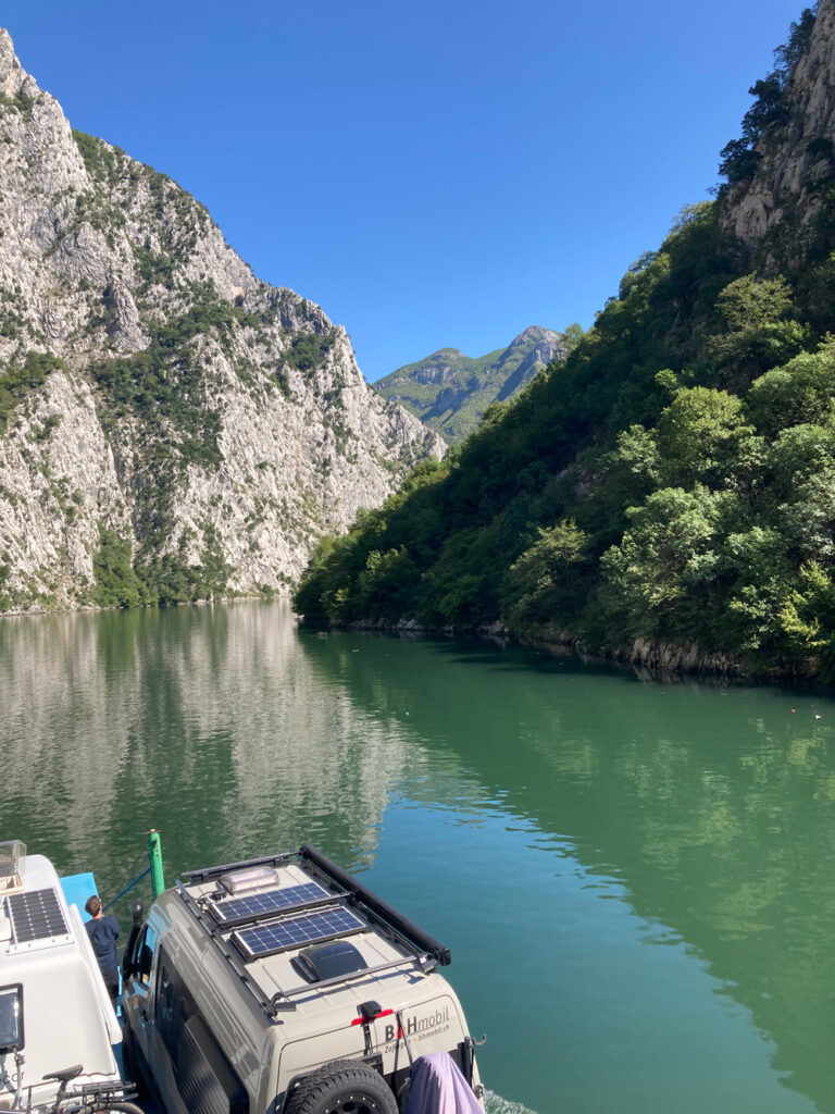 Schrecksekunde: Mir krabbelt in der Toilette ein Skorpion am Fuß entlang – zum Glück vertragen wir uns! Das hört sich alles zusammen ziemlich doof an – war aber durchaus ok. Von diesem Ort nehmen wir Mazzi mit nach Peshkopi. Das liegt auf dem Weg und Busverbindungen sind schwierig … Mazzi ist indische Digital Native und mit Rucksack unterwegs – per Bus oder Trampen. Wir fragen, wie das so läuft als Frau alleine. Gab wohl ein paar unangenehme Situationen aber zum Glück ist nichts passiert und in der Regel funktioniert’s gut. Wir erfahren auch aus erster Hand etwas über die Verhältnisse in Indien – eine kurzweilige Fahrt! Sie lädt uns noch auf einen Kaffee ein und wir starten durch nach Nordmazedonien!