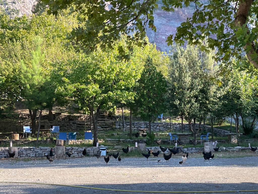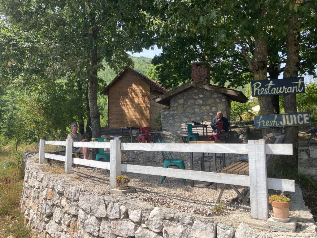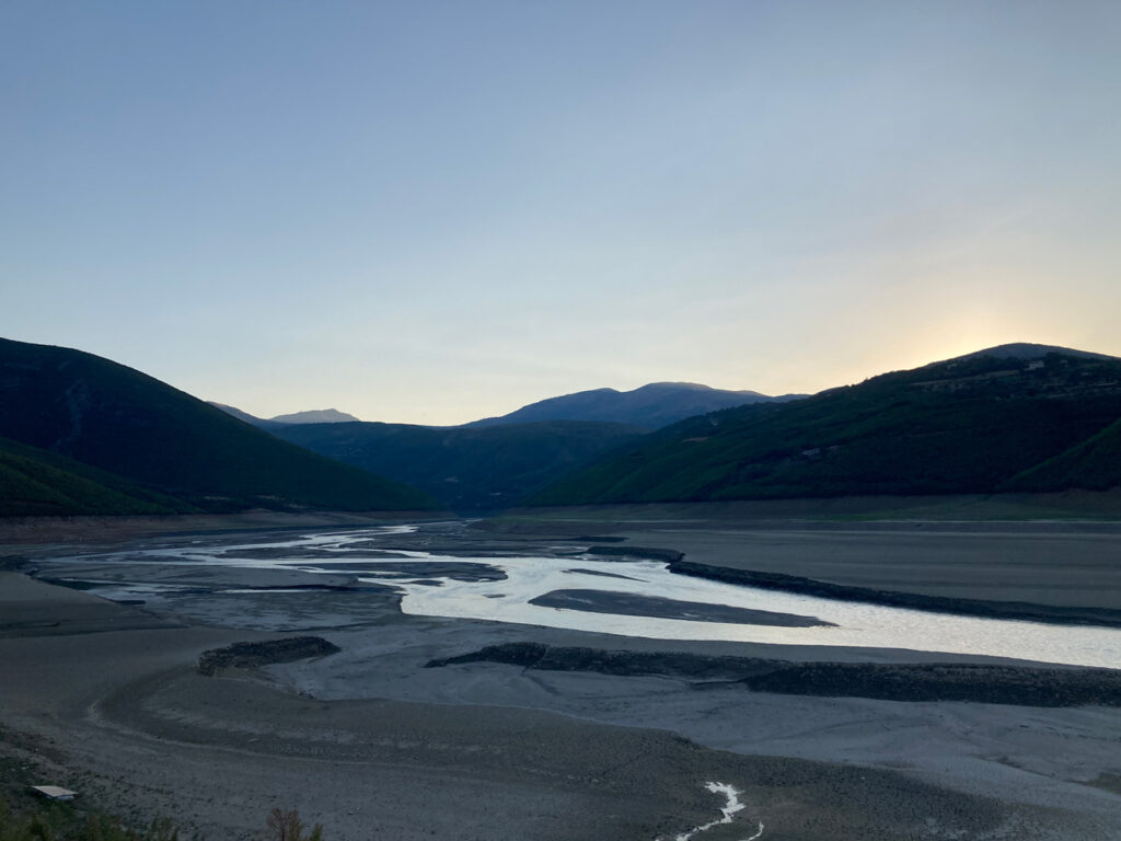 Wir erarbeiten uns hartnäckig einen schlecht ausgeschilderten privaten Stellplatz, der auch Zimmer und ein Restaurant bietet (ein Familienprojekt im Aufbau sozusagen). Gelegen an einem mehr oder weniger ausgetrockneten Fluss in der Nähe von Kukes. Allerdings ist der Fluss nur im Sommer ausgetrocknet – normal.