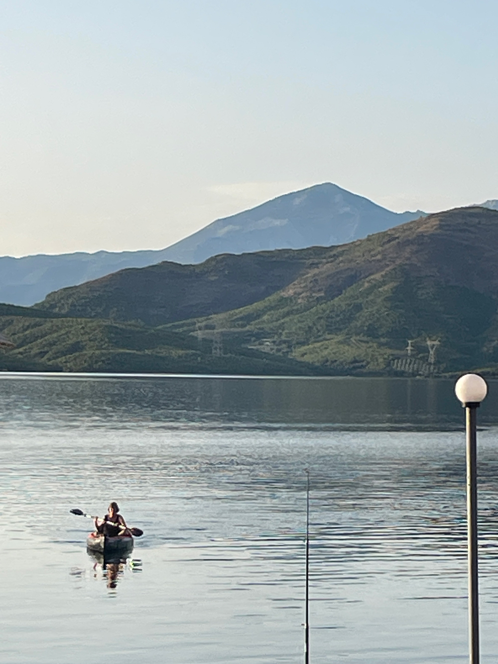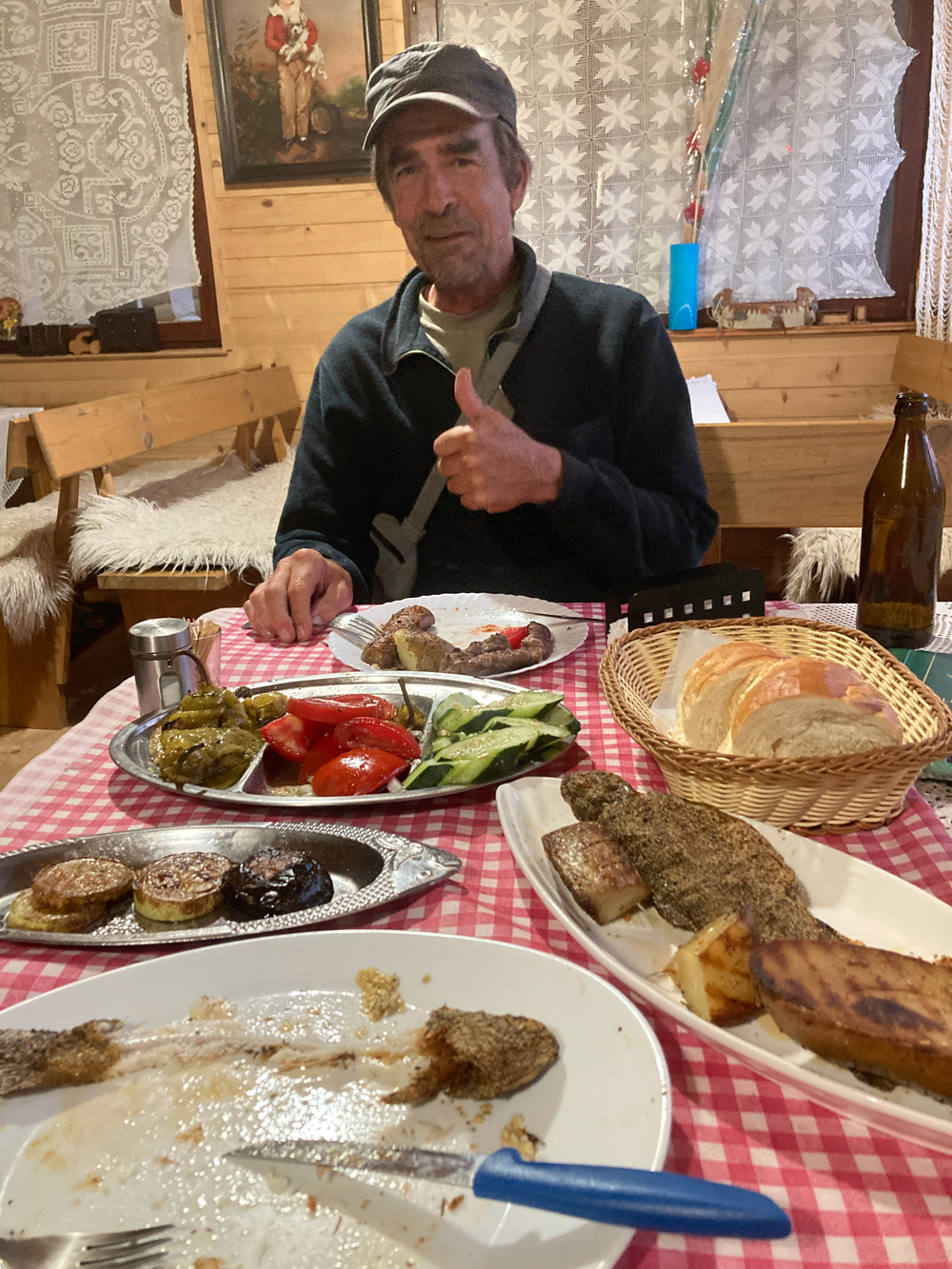Schrecksekunde: Mir krabbelt in der Toilette ein Skorpion am Fuß entlang – zum Glück vertragen wir uns! Das hört sich alles zusammen ziemlich doof an – war aber durchaus ok. Von diesem Ort nehmen wir Mazzi mit nach Peshkopi. Das liegt auf dem Weg und Busverbindungen sind schwierig … Mazzi ist indische Digital Native und mit Rucksack unterwegs – per Bus oder Trampen. Wir fragen, wie das so läuft als Frau alleine. Gab wohl ein paar unangenehme Situationen aber zum Glück ist nichts passiert und in der Regel funktioniert’s gut. Wir erfahren auch aus erster Hand etwas über die Verhältnisse in Indien – eine kurzweilige Fahrt! Sie lädt uns noch auf einen Kaffee ein und wir starten durch nach Nordmazedonien!