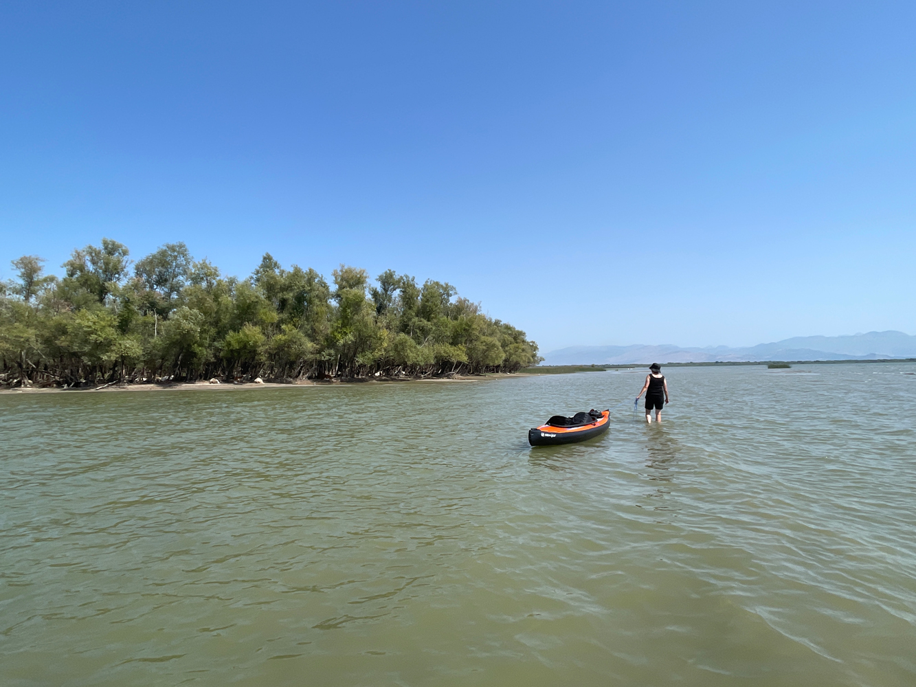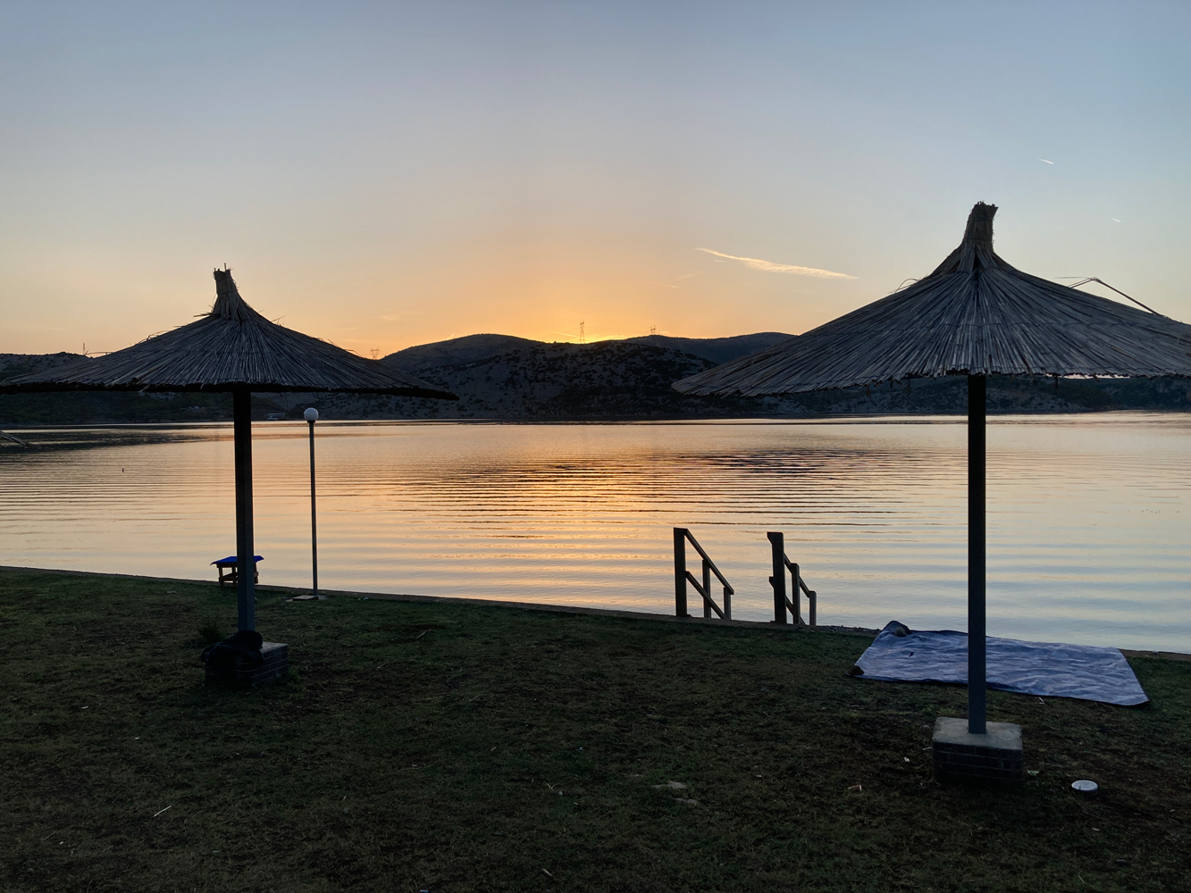 Wir erarbeiten uns hartnäckig einen schlecht ausgeschilderten privaten Stellplatz, der auch Zimmer und ein Restaurant bietet (ein Familienprojekt im Aufbau sozusagen). Gelegen an einem mehr oder weniger ausgetrockneten Fluss in der Nähe von Kukes. Allerdings ist der Fluss nur im Sommer ausgetrocknet – normal.